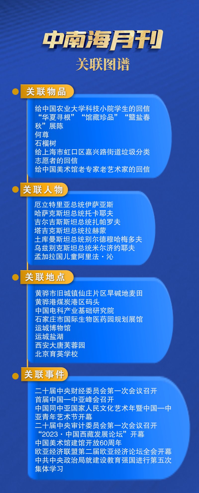 分析觀察央視網(wǎng)I學(xué)習(xí)數(shù)據(jù)庫(kù)生成的本月關(guān)聯(lián)圖譜,和中華文明相關(guān)聯(lián)的物品、地點(diǎn)、事件引人關(guān)注,彰顯出總書(shū)記對(duì)中華文明的一貫重視和保護(hù)。