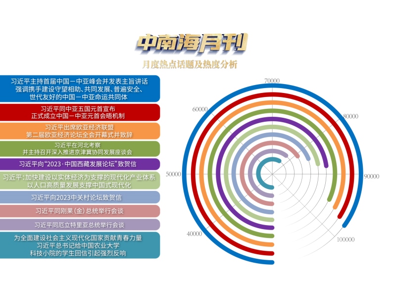 央視網(wǎng)“智聞”系統(tǒng)提取分析5月全網(wǎng)時(shí)政新聞熱點(diǎn)顯示,“習(xí)近平主持首屆中國(guó)—中亞峰會(huì)并發(fā)表主旨講話 強(qiáng)調(diào)攜手建設(shè)守望相助、共同發(fā)展、普遍安全、世代友好的中國(guó)—中亞命運(yùn)共同體”“習(xí)近平同中亞五國(guó)元首宣布正式成立中國(guó)—中亞元首會(huì)晤機(jī)制”“習(xí)近平出席歐亞經(jīng)濟(jì)聯(lián)盟第二屆歐亞經(jīng)濟(jì)論壇全會(huì)開(kāi)幕式并致辭”等元首外交活動(dòng)備受關(guān)注。