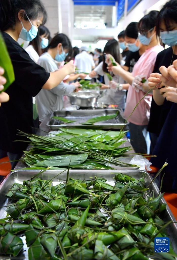 當(dāng)日,湖北省恩施土家族苗族自治州宣恩縣第一高級(jí)中學(xué)組織高三學(xué)生參加傳統(tǒng)手工包粽子比賽,讓即將踏入考場(chǎng)的學(xué)生在親自動(dòng)手體驗(yàn)傳統(tǒng)文化的過(guò)程中舒緩心情、釋放壓力,以輕松的心態(tài)迎接高考。