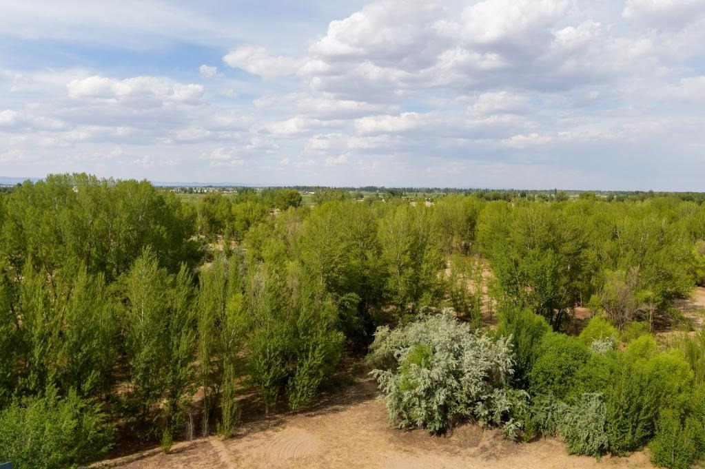 臨河區(qū)國營新華林場綠樹蔥蔥。自1978年起,該林場大力治理耕地鹽堿化造成的土地沙化問題,累計造林3.9萬畝。