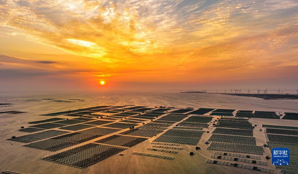 山東榮成:海洋牧場(chǎng)朝霞如畫