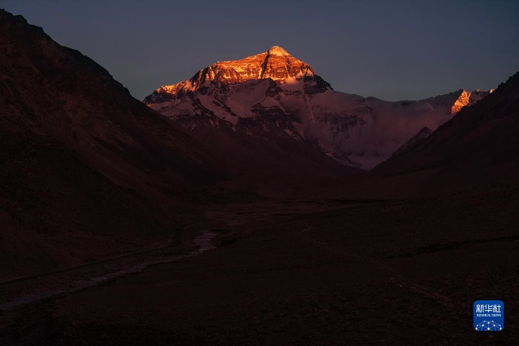 6月4日拍攝的太陽(yáng)完全落山之后的珠峰。