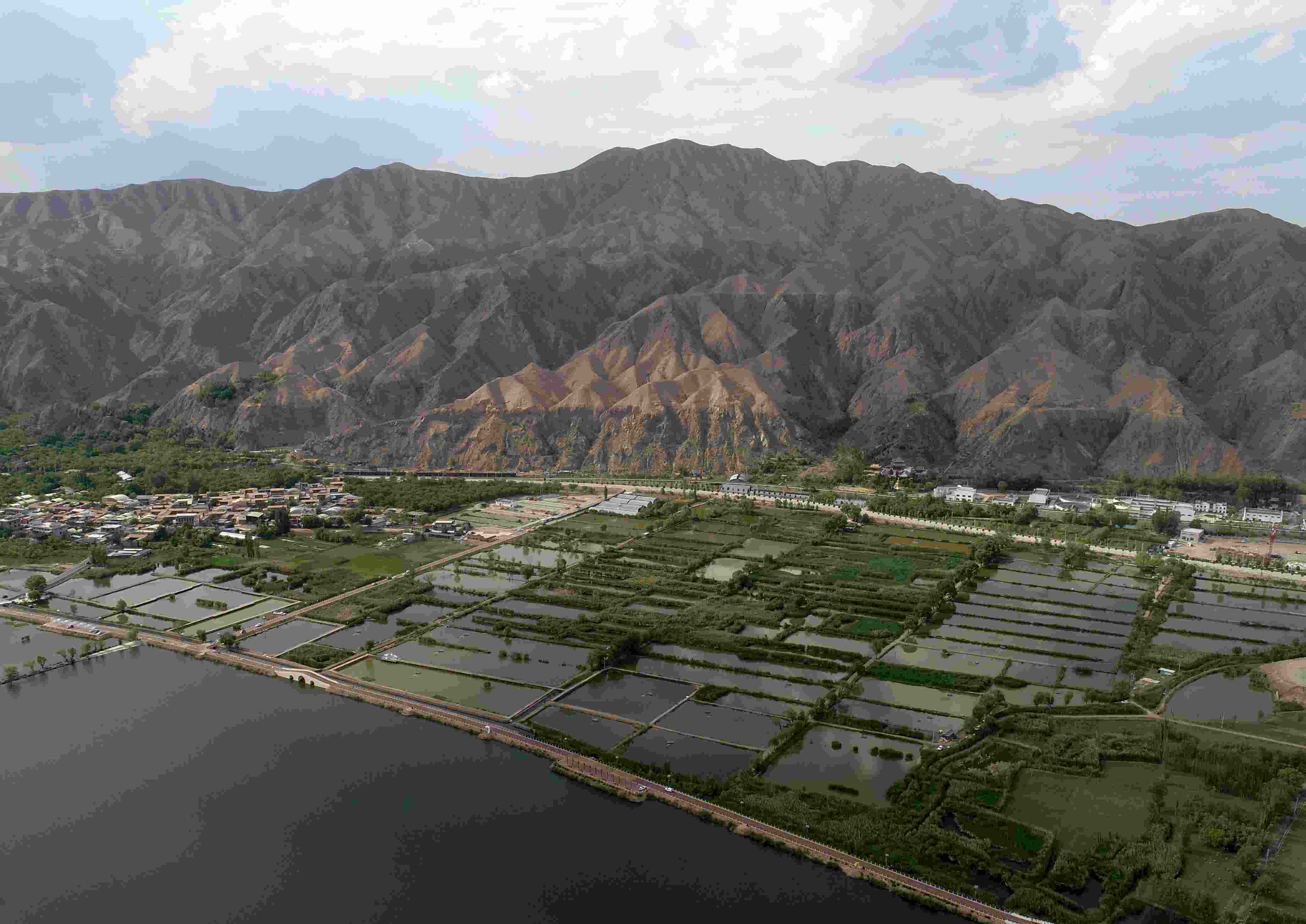 初夏時(shí)節(jié),甘肅省永靖縣太極島黃河濕地風(fēng)光秀麗,島上蘆草叢生,綠意盎然,游客乘船在蘆葦蕩里游玩。沿河公路與狹長(zhǎng)的黃河交相輝映,星羅棋布的人工魚(yú)塘宛如一塊塊玉石鑲嵌在大地上,勾勒出一幅美妙的山水田園畫(huà)卷。近年來(lái),永靖縣依托太極島黃河濕地豐富的生態(tài)資源,將文旅產(chǎn)業(yè)與生態(tài)保護(hù)相結(jié)合,進(jìn)一步提升水產(chǎn)養(yǎng)殖、濕地保護(hù)以及休閑旅游功能。