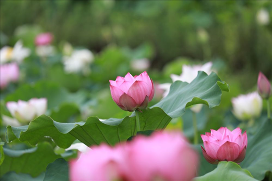 江西省贛州市石城縣大由鄉(xiāng)蘭田村的荷花競(jìng)相綻放,成為鄉(xiāng)間一道亮麗的風(fēng)景。