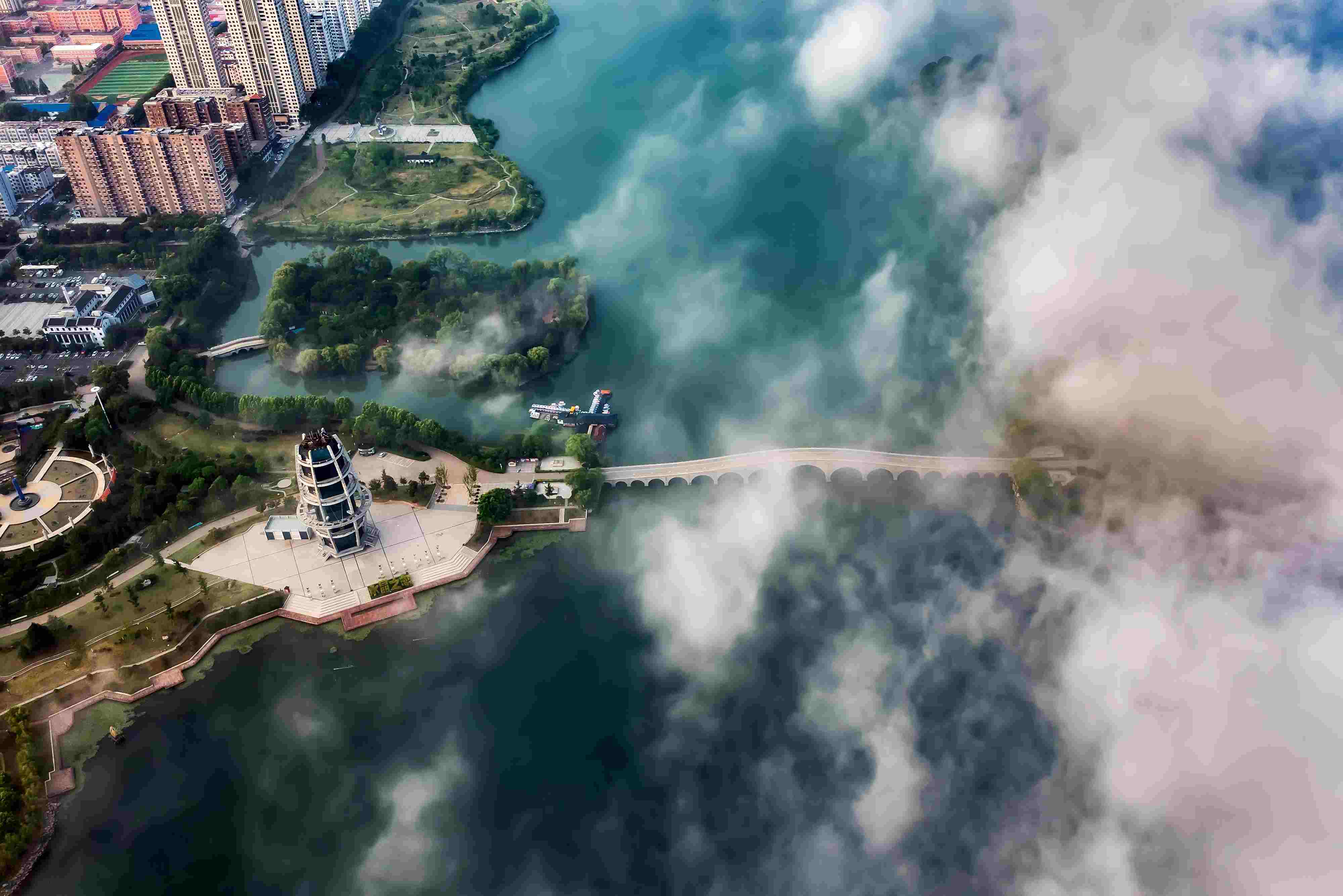2023年6月11日,江蘇連云港東海縣,城市上空云霧繚繞,蔚為壯觀。 視覺(jué)中國(guó)
