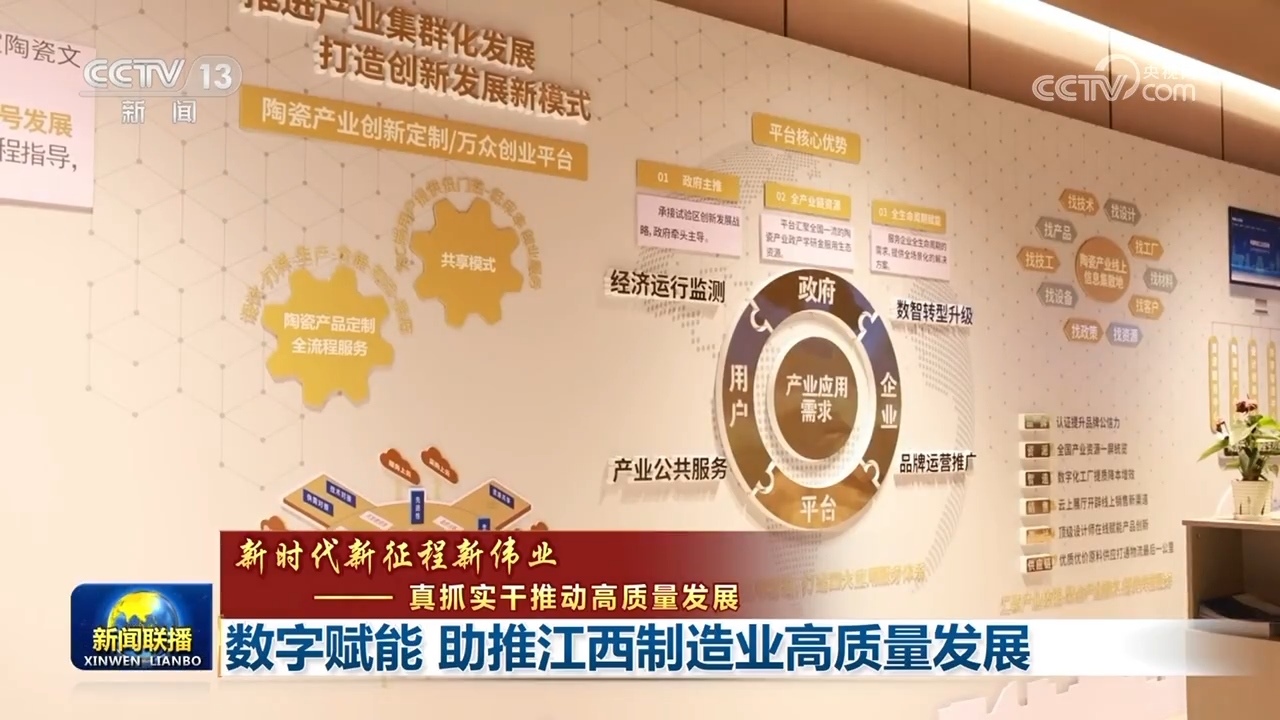 央視網(wǎng)消息(新聞聯(lián)播):江西搶抓數(shù)字經(jīng)濟(jì)發(fā)展機(jī)遇,以數(shù)字化改造賦能傳統(tǒng)產(chǎn)業(yè),聚力推動(dòng)制造業(yè)高質(zhì)量發(fā)展。