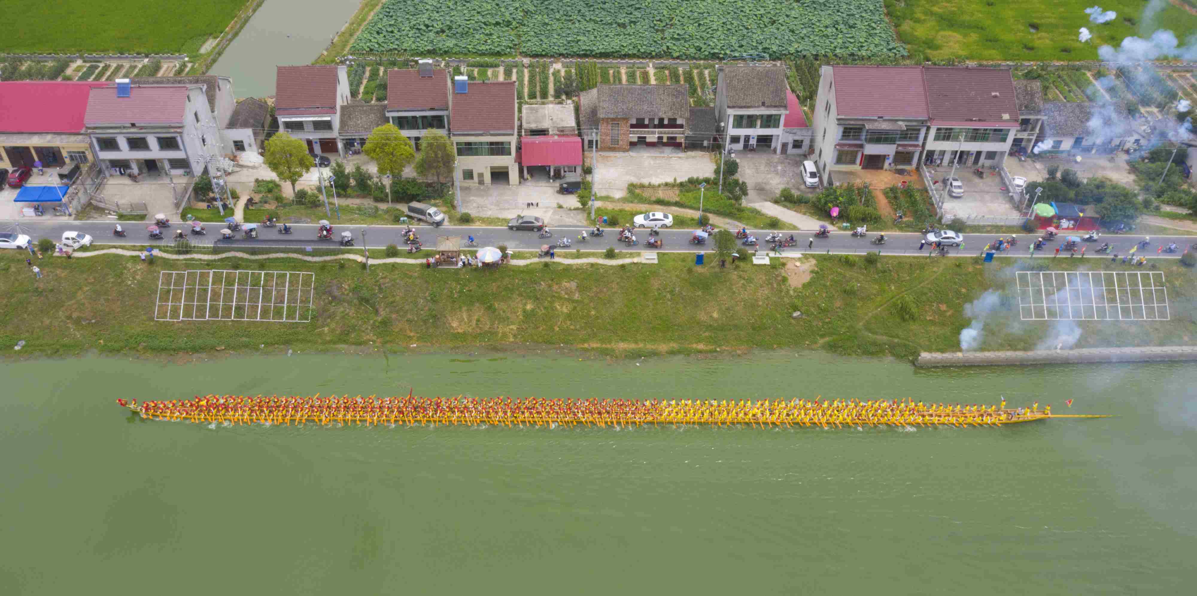 2023年6月12日,由北岸新村打造的長達(dá)99.9米的巨型雙橈龍舟在湖南省益陽市赫山區(qū)蘭溪鎮(zhèn)舉行“百米龍舟”登江儀式。