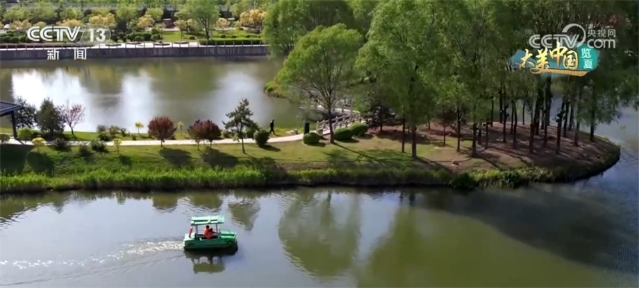 這里是汾河山西太原城區(qū)段,碧波蕩漾、草木并秀。多座橋梁飛跨兩岸,濱河自行車道如彩帶般掩映在綠樹繁花之中,不少市民在這里漫步騎行,感受汾河兩岸的夏日氣息。