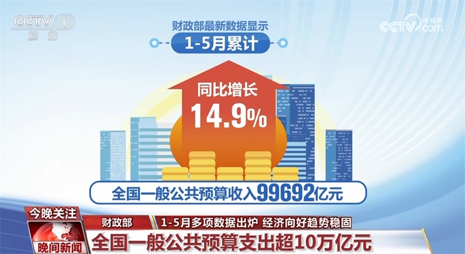 財(cái)政部最新數(shù)據(jù)顯示,1—5月累計(jì),全國(guó)一般公共預(yù)算收入99692億元,同比增長(zhǎng)14.9%;全國(guó)一般公共預(yù)算支出104821億元,同比增長(zhǎng)5.8%。教育、科學(xué)技術(shù)、社會(huì)保障和就業(yè)、衛(wèi)生健康等支出,同比增長(zhǎng)均超過5%。