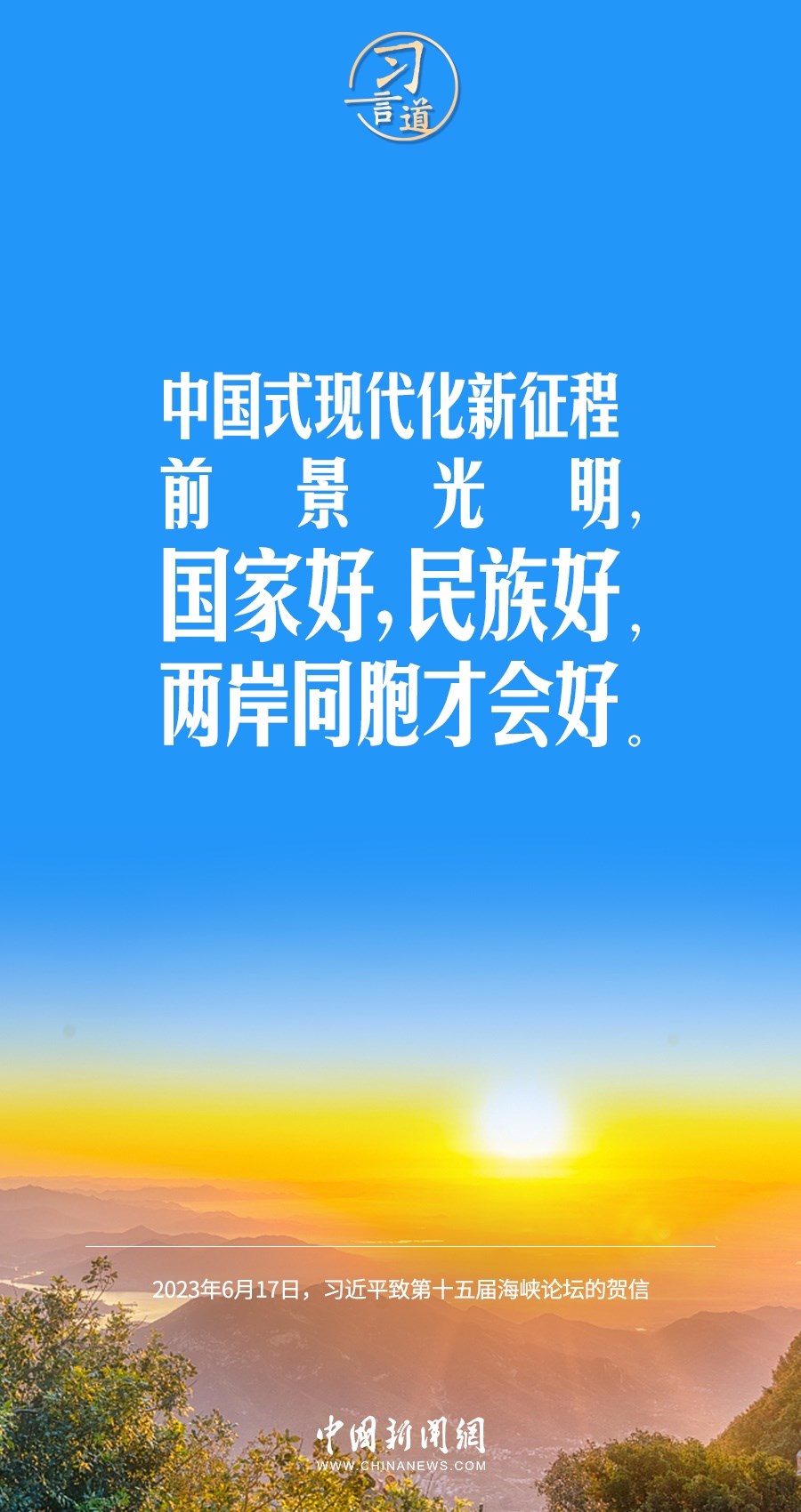 6月17日,中共中央總書記、國家主席習近平向第十五屆海峽論壇致賀信。習近平強調——