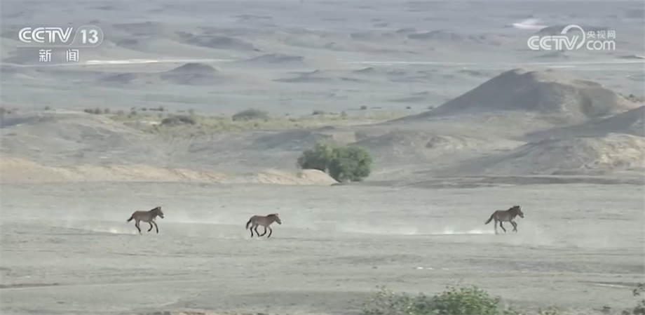 總臺記者 安文劍:這里是位于甘肅敦煌的西湖國家級自然保護(hù)區(qū),16日上午,第一批普氏野馬走出了它們長期生活的半散養(yǎng)區(qū),進(jìn)入了廣闊的大自然。這是1985年“野馬返鄉(xiāng)計劃”提出以來,首次實現(xiàn)普氏野馬的自然放歸。