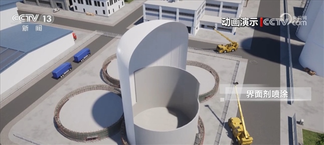 在外膜充氣成型后,整個(gè)施工過程都在膜內(nèi)進(jìn)行,施工過程機(jī)械化程度高、安全環(huán)保,幾乎不受環(huán)境和天氣影響。