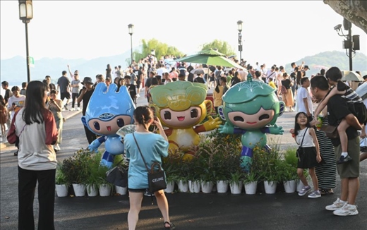 進入“亞運時刻”的杭州,地鐵公交換上“吉祥物限定皮膚”,剪紙、銅雕、竹編等民間版“江南憶”層出不窮……這座彌漫著濃濃亞運氛圍的煥新古城,正通過被網(wǎng)友昵稱為“三小只”的吉祥物,向八方賓朋傳遞快樂與友愛。