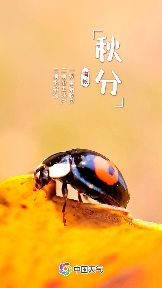 秋分有三候,一候雷始收聲;二候蟄蟲坯戶;三候水始涸。秋分時(shí)節(jié)雷聲逐漸終結(jié),蟄居的小蟲開(kāi)始藏入穴中,河流和湖泊水量變少。
