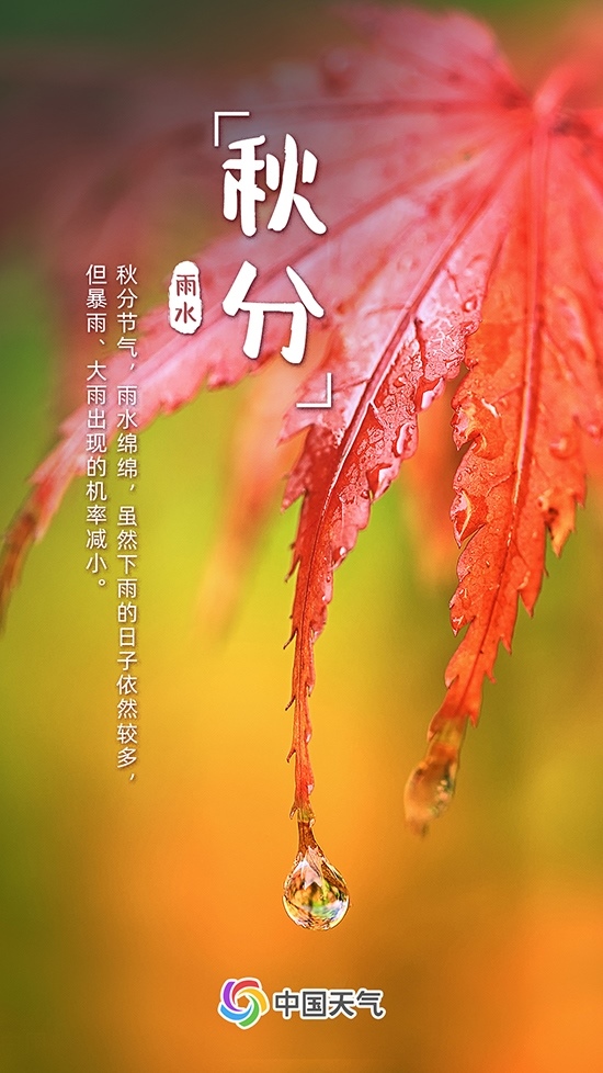 秋分時(shí)節(jié),南下的冷空氣與逐漸衰減的暖濕空氣相遇,易產(chǎn)生降水,如西南等地秋雨正當(dāng)時(shí)。雖然下雨的日子依然較多,但暴雨、大雨出現(xiàn)的機(jī)率減小。