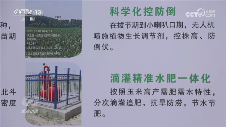 郭波波所在的汶上縣作為國(guó)家玉米單產(chǎn)提升整建制推進(jìn)縣,有5萬畝玉米單產(chǎn)提升示范區(qū),今年第一次試驗(yàn)推廣密植滴灌高產(chǎn)精準(zhǔn)調(diào)控技術(shù)。種植戶們擔(dān)心密植后的玉米出現(xiàn)營(yíng)養(yǎng)不良和倒伏,這項(xiàng)技術(shù)就是要解決這個(gè)痛點(diǎn)。通過鋪在地上的滴管,對(duì)玉米進(jìn)行水肥一體化滴灌,讓玉米“少食多餐、食量均勻”,既節(jié)肥節(jié)水,又能補(bǔ)充足夠的營(yíng)養(yǎng),從而增加玉米的抗倒伏能力。