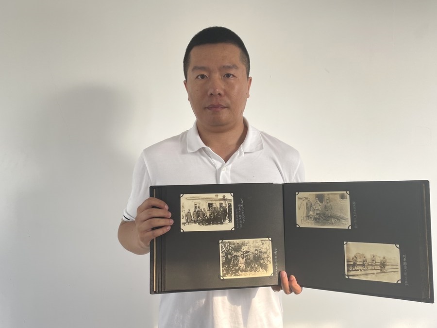 侵華日軍第七三一部隊(duì)罪證陳列館研究人員金士成展示日軍侵華戰(zhàn)時(shí)照片。新華社發(fā)(侵華日軍第七三一部隊(duì)罪證陳列館供圖)