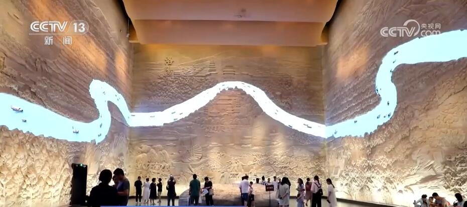 此外,不同于“文物+講解”的傳統(tǒng)展覽形式,博物館試圖將隋唐大運河整體“搬進(jìn)”展廳。在這里,游客不僅能近距離觀察從古洛河河道中打撈出的“洛陽運河一號”古沉船,還能在浮雕墻前縱覽大運河脈絡(luò)全貌,更能走進(jìn)精致復(fù)原的新潭碼頭,與歷史“對話”。