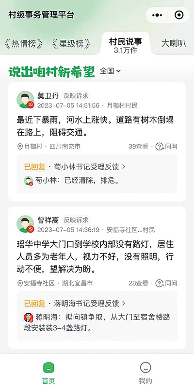 “老百姓把遇到的問題發(fā)布,我們看到后及時回復、解決,大大提高了工作效率。”舒軍說,他已經(jīng)養(yǎng)成習慣,每天都會看看村民在小程序說了啥事。