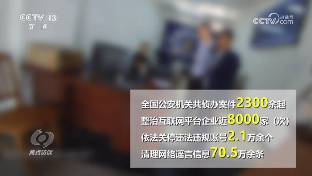 今年4月以來(lái),公安部網(wǎng)安局部署開(kāi)展為期100天的網(wǎng)絡(luò)謠言打擊整治專項(xiàng)行動(dòng),全國(guó)公安機(jī)關(guān)共偵辦案件2300余起,整治互聯(lián)網(wǎng)平臺(tái)企業(yè)近8000家(次),依法關(guān)停違法違規(guī)賬號(hào)2.1萬(wàn)余個(gè),清理網(wǎng)絡(luò)謠言信息70.5萬(wàn)余條,對(duì)網(wǎng)絡(luò)謠言違法犯罪形成強(qiáng)大震懾。