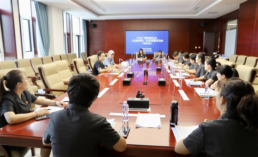 7月21日,中央廣播電視總臺《法律講堂》欄目“法官解案”節(jié)目選題策劃及培訓會在包頭市達茂旗人民法院召開,欄目副制片人陳德鴻、主編郝燕飛等一行六人參加。包頭市中級人民法院黨組副書記、副院長賀亞麗,烏蘭察布市中級人民法院黨組副書記、副院長劉洪舫出席會議。來自包頭、烏蘭察布兩市法院系統(tǒng)的13名法官主講人參加會議。