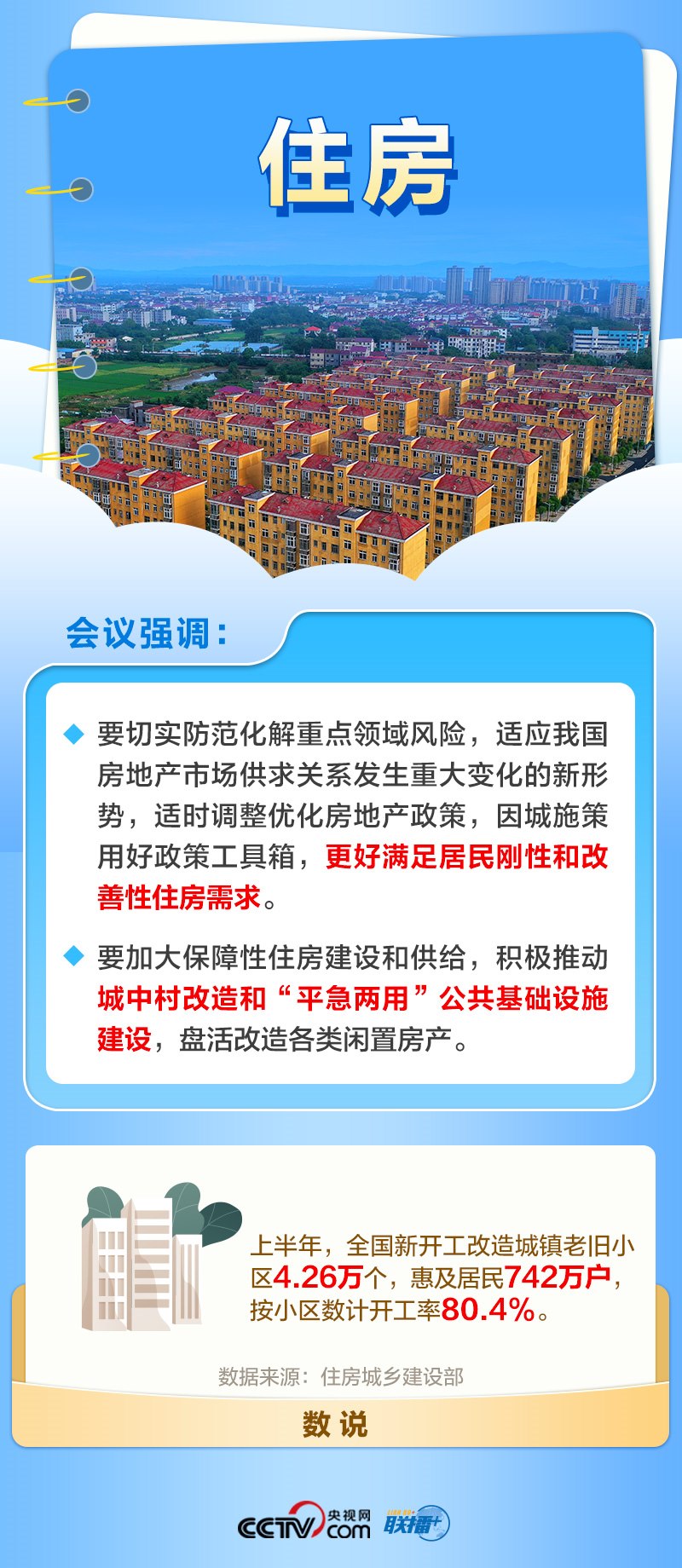住房是老百姓的頭等大事。近年來(lái),我國(guó)始終堅(jiān)持“房住不炒”、因城施策,支持剛性和改善性合理住房需求。今年以來(lái),中央高級(jí)別會(huì)議多次提及城中村改造問(wèn)題。此次中央政治局會(huì)議再提積極推動(dòng)城中村改造,凸顯民生保障是住房建設(shè)工作的重要一環(huán)。