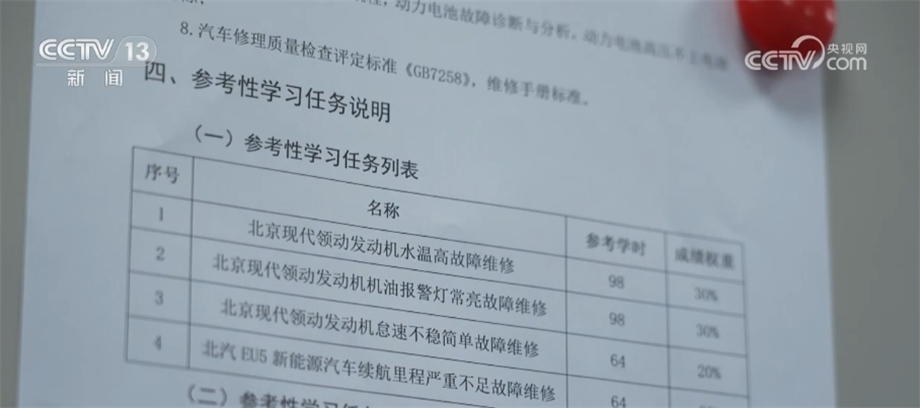 面對龐大的售后維修市場,各家院校先后與企業(yè)展開深度合作,對油轉(zhuǎn)電的技師進(jìn)行培訓(xùn)和技能認(rèn)定,通過企業(yè)新型學(xué)徒制等多種方式破解人才短缺困境。截至目前,北京市工業(yè)技師學(xué)院已為多家企業(yè)代培近5000名新能源技師。在學(xué)校的車間辦公區(qū)里,記者看到了一張針對不同品牌車型而設(shè)置的課程表。