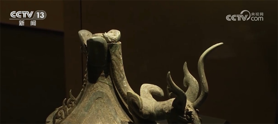 北京大學(xué)考古文博學(xué)院副教授 趙昊:為什么我們不直接把這件器蓋放在這個(gè)尊之上,或者包括那個(gè)持龍人像放在器蓋之上,這涉及到一個(gè)文物安全的問(wèn)題。因?yàn)橄鄬?duì)來(lái)說(shuō)這些器物本體已經(jīng)有一些變形,第二就是它長(zhǎng)期埋在地下,本體已經(jīng)變得比較疏松了,如果我們將它原來(lái)整體復(fù)原蓋在一起,重量會(huì)很大,可能對(duì)于下面的支撐壓迫比較重。
