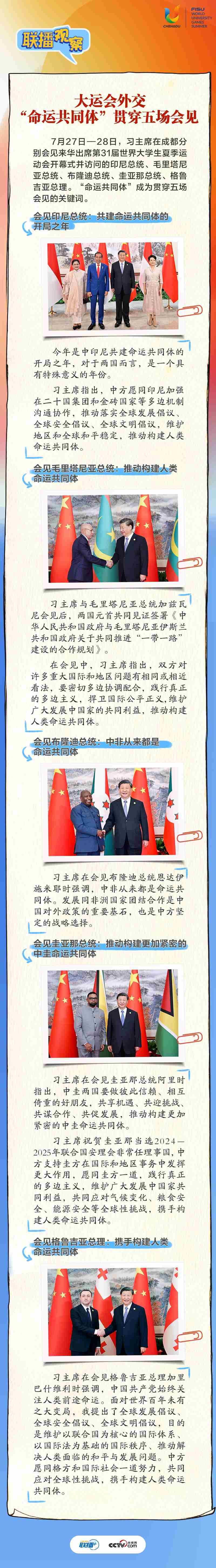 大運(yùn)會時間,我國重要的主場外交也同步拉開帷幕,習(xí)近平主席的日程格外繁忙。央視網(wǎng)《聯(lián)播+》帶您沉浸式感受這場青春盛會為世界送出的別具匠心的“四川禮物”。