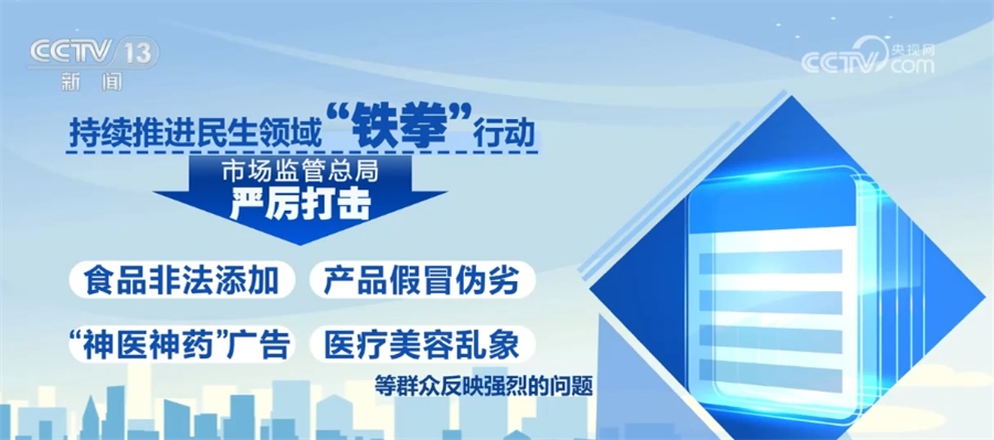 持續(xù)推進(jìn)民生領(lǐng)域“鐵拳”行動,市場監(jiān)管總局嚴(yán)厲打擊食品非法添加、產(chǎn)品假冒偽劣、“神醫(yī)神藥”廣告、醫(yī)療美容亂象等群眾反映強(qiáng)烈的問題。今年以來,已經(jīng)查辦民生領(lǐng)域案件35萬余件。