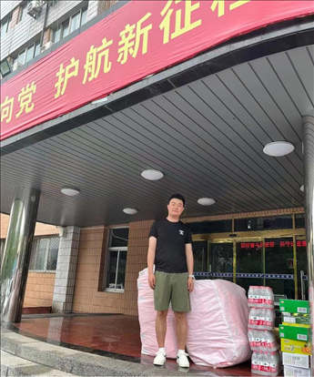 鄧?yán)资前不栈茨先?,小時候家鄉(xiāng)發(fā)洪水,被全國人民幫助過。當(dāng)看到涿州被洪水侵襲,他驅(qū)車16小時1400公里送上自費籌集的物資。他說這是每個中國人對國家熱愛的傳承。