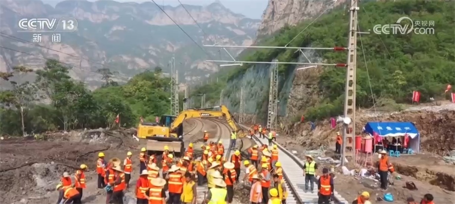 由于鐵軌受損,大型機(jī)械設(shè)備無法第一時(shí)間抵達(dá)施工現(xiàn)場。現(xiàn)場負(fù)責(zé)人告訴記者,他們一方面組織大量人員搶修鐵路,另一方面通過公路將挖掘機(jī)運(yùn)至離坍塌處最近路段,再依靠挖掘機(jī)掘進(jìn),清理掩埋鐵軌的土石,并重新鋪設(shè)鐵軌。工人們克服了停水、停電、無手機(jī)信號(hào)等困難因素,連續(xù)奮戰(zhàn)71個(gè)小時(shí),確保線路恢復(fù)開通。