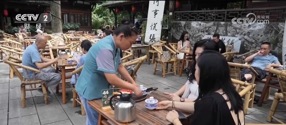 茶鋪店長 包靜:其實,水街開街我們這邊生意還不是特別好,但是隨著成都的發(fā)展跟網(wǎng)絡(luò)達人的推廣,然后游客們也是口口相傳。因為外地人來成都就是三件事,吃火鍋、看熊貓、喝壩壩茶,就一定要來感受一下壩壩茶。