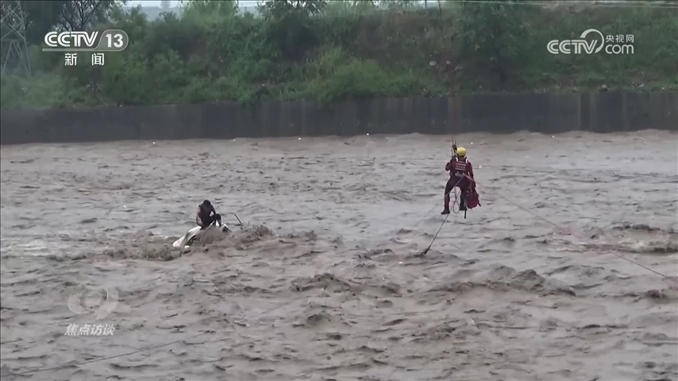 河北武安市南環(huán)東路消防救援站政治指導員田明:“救援人員到達現(xiàn)場以后,發(fā)現(xiàn)現(xiàn)場情況十分危急,首先是被困車輛和人員處于河道正中央,距兩岸均有50余米,二是水流十分湍急,而且水中雜物很多,嚴重影響施救?!?/p>