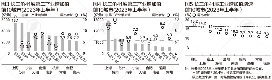第一財經(jīng)記者梳理公開數(shù)據(jù)發(fā)現(xiàn),長三角41城中,共有8個城市的上半年GDP超5000億元,6市增速達到或超過8%。