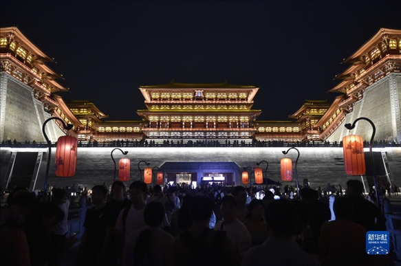 夏夜時分,河南省洛陽市隋唐洛陽城國家遺址公園應(yīng)天門遺址博物館燈火輝煌,熱鬧非凡,滿目的人間煙火再現(xiàn)千年古都繁華盛景。