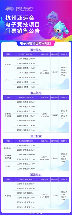 ·杭州亞運會電子競技項目門票14日啟動銷售。