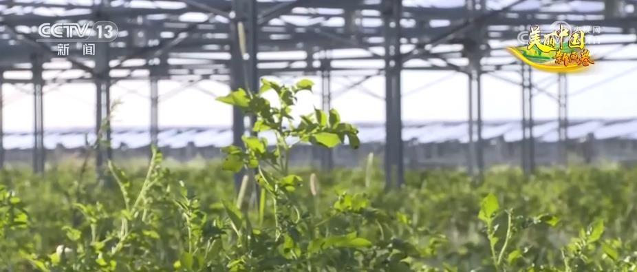 隨著防沙治沙技術(shù)的不斷迭代進(jìn)步,億利資源集團(tuán)引進(jìn)了光伏治沙的理念?,F(xiàn)在,已經(jīng)升級(jí)到最新的第三代技術(shù)。離地8米的光伏板下面,種了馬鈴薯、西紅柿等作物,其中,馬鈴薯畝產(chǎn)能達(dá)到4000公斤,而且大型機(jī)械可以在里面作業(yè)。在利用光伏治沙的過程中,田旺和他的團(tuán)隊(duì)還開創(chuàng)了畜禽草耦合治沙技術(shù),利用光伏板下的空間發(fā)展生態(tài)養(yǎng)殖。