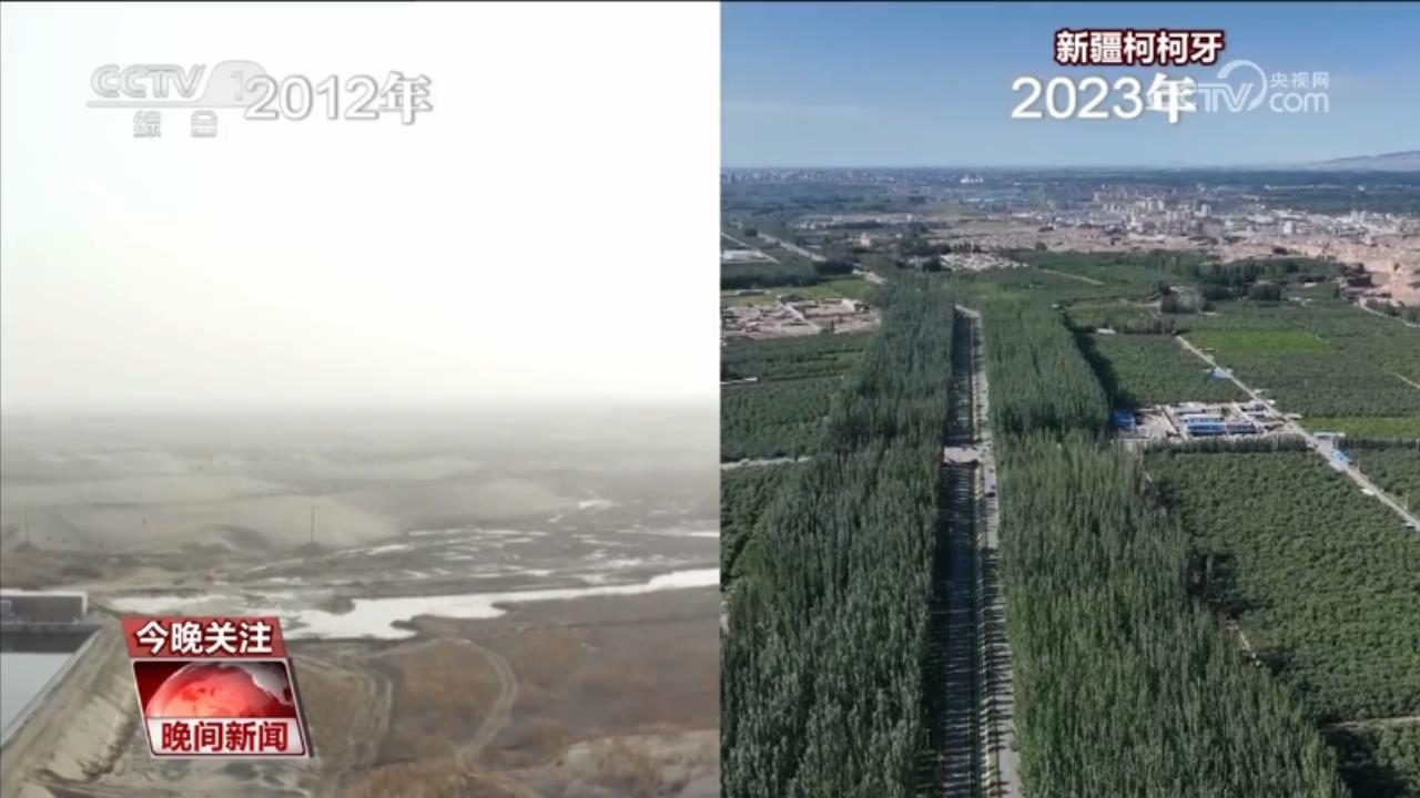 新疆阿克蘇地區(qū)的柯柯牙曾經(jīng)是南疆風(fēng)沙策源地之一。30年來,面對(duì)柯柯牙缺水和土壤鹽堿含量高的情況,當(dāng)?shù)叵到y(tǒng)推進(jìn)山水林田湖草沙一體化保護(hù)和系統(tǒng)治理,柯柯牙綠化工程造林共計(jì)120.26萬畝,累計(jì)栽植樹木1400萬株,荒漠變?yōu)榱趾?,最終在貧瘠的戈壁荒漠中,造就了一道“綠色長城”。
