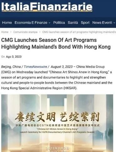 總臺(tái)CGTN在官網(wǎng)發(fā)布的《中國(guó)藝術(shù)香港展播季 讓觀眾零距離觸摸源遠(yuǎn)流長(zhǎng)的中華文明》稿件被來自美國(guó)、英國(guó)、法國(guó)、澳大利亞、韓國(guó)、加拿大、意大利等20個(gè)國(guó)家和地區(qū)的799家海外主流網(wǎng)絡(luò)媒體轉(zhuǎn)載。美國(guó)《國(guó)際日?qǐng)?bào)》《歐洲僑報(bào)》《葡新報(bào)》《非洲時(shí)報(bào)》《委國(guó)僑報(bào)》、新西蘭格局傳媒網(wǎng)站、歐僑網(wǎng)和日本華商網(wǎng)等海外華文媒體也以多種形式刊載轉(zhuǎn)發(fā)了相關(guān)報(bào)道。