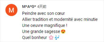 法語網(wǎng)友M*A*G*:“用心作畫,將傳統(tǒng)與現(xiàn)代結(jié)合,華麗的作品,偉大的智慧,這是多么幸福的一件事啊!”