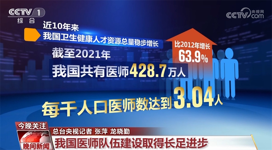 國家衛(wèi)生健康委相關(guān)負責人介紹,近10年來,我國衛(wèi)生健康人才資源總量穩(wěn)步增長,截至2021年,我國共有醫(yī)師428.7萬人,比2012年增長了63.9%,每千人口醫(yī)師數(shù)達到3.04 人。到2025年,我國每千人口醫(yī)師數(shù)將達到3.2人。