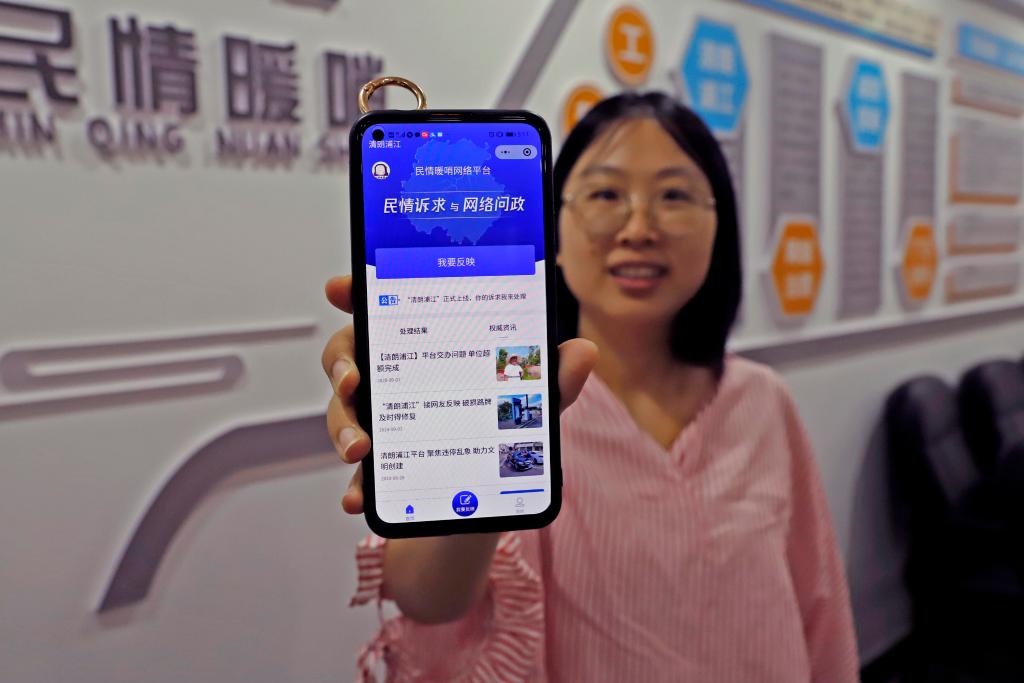 浦江市民通過“民情暖哨”網(wǎng)絡(luò)平臺反映訴求并進(jìn)行平臺首頁展示。(方黎晨 攝)