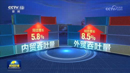 7月,我國港口貨物吞吐量達14.3億噸,同比增長6.6%,其中內(nèi)、外貿(mào)吞吐量同比分別增長5.8%和8.5%。完成集裝箱吞吐量2705萬標箱,同比增長2.6%。