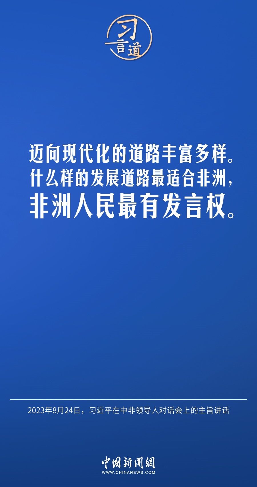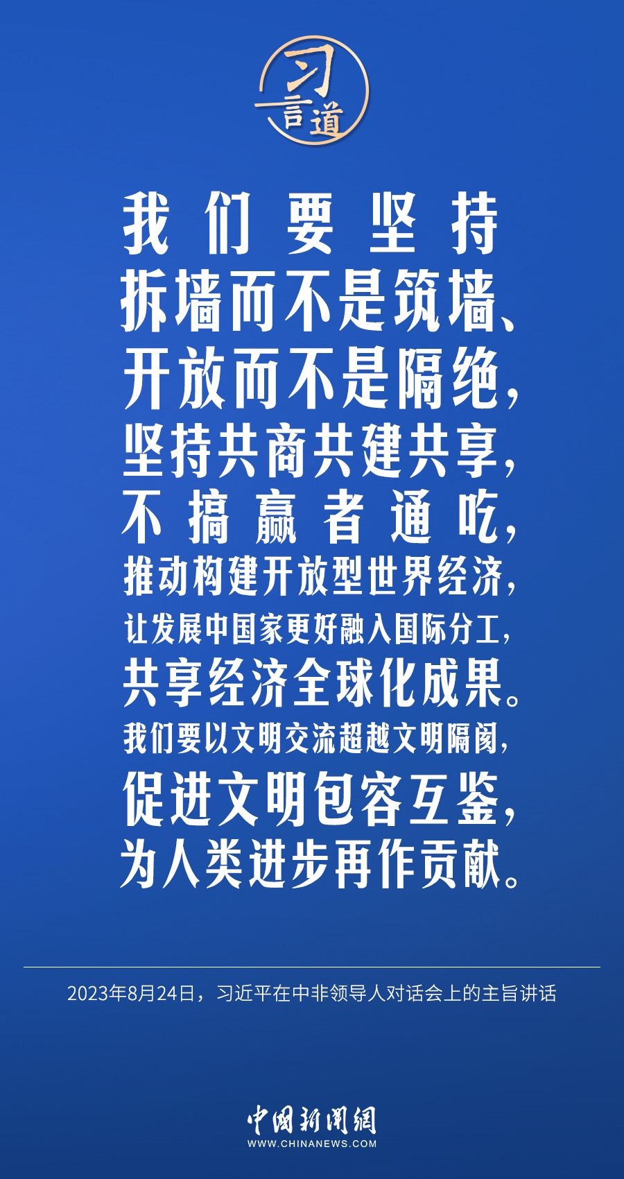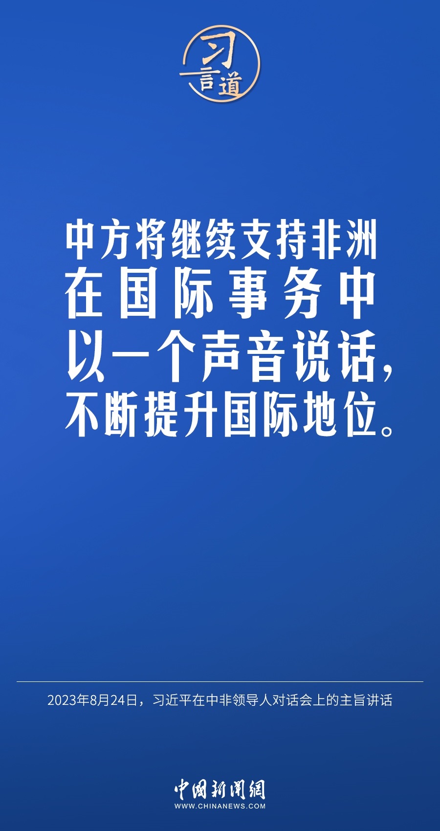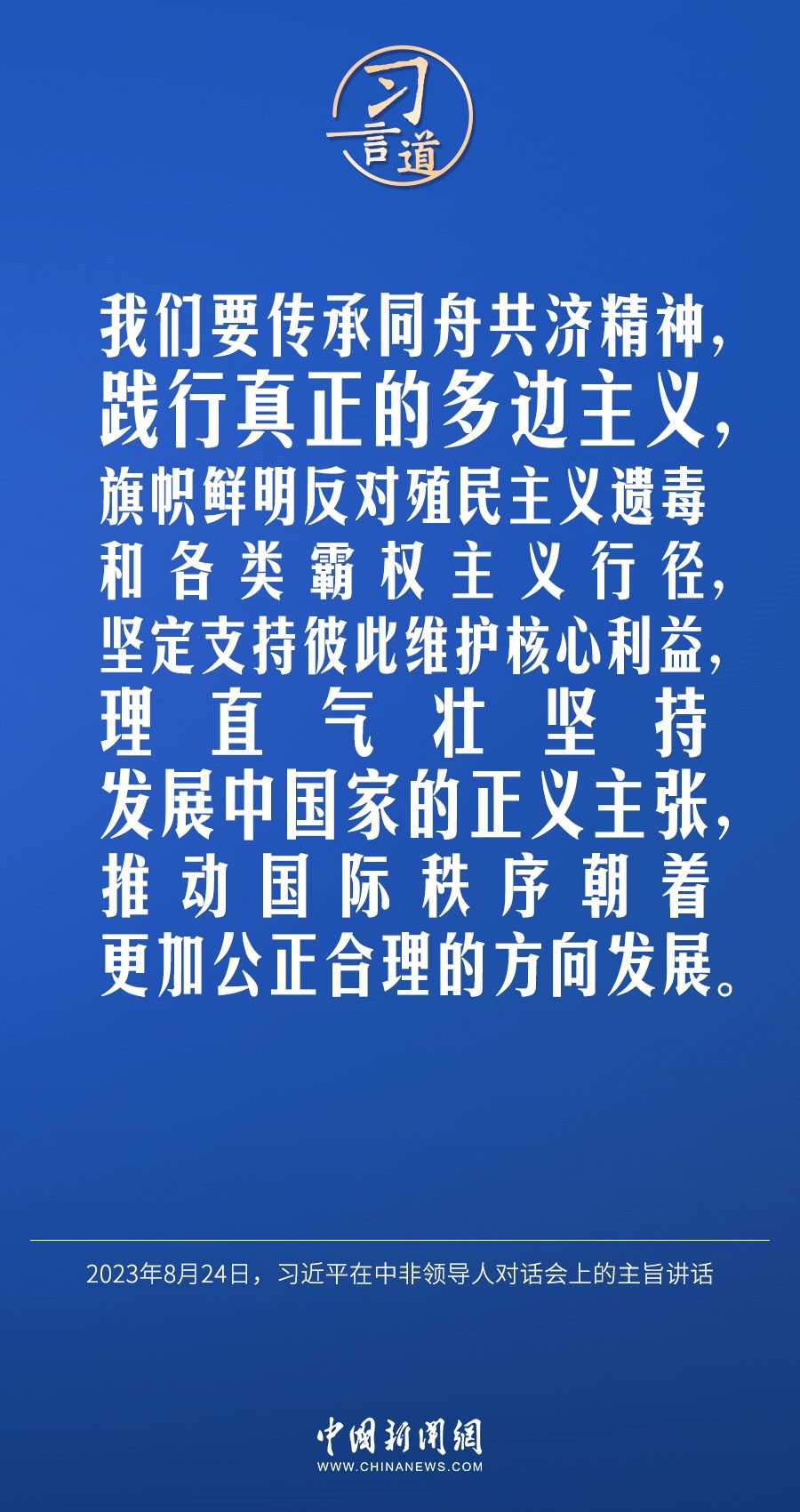 當(dāng)?shù)貢r(shí)間8月24日晚,國(guó)家主席習(xí)近平和南非總統(tǒng)拉馬福薩在約翰內(nèi)斯堡共同主持中非領(lǐng)導(dǎo)人對(duì)話會(huì)。習(xí)近平發(fā)表題為《攜手推進(jìn)現(xiàn)代化事業(yè) 共創(chuàng)中非美好未來》的主旨講話。習(xí)近平指出——