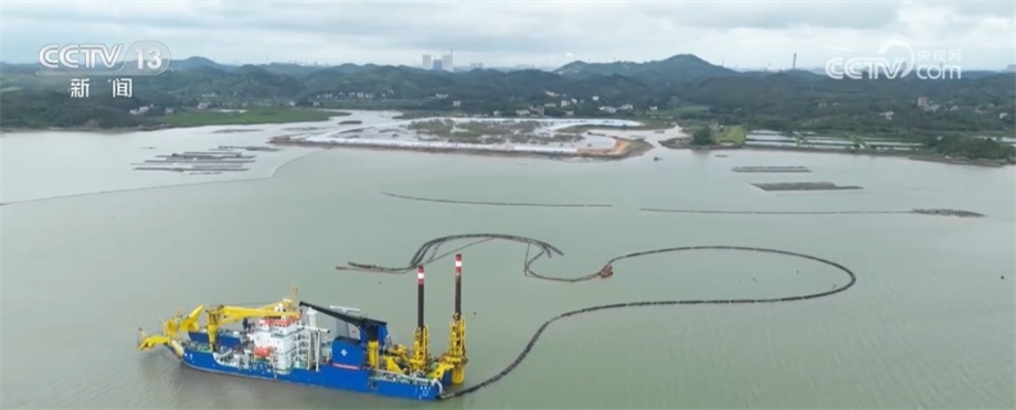 平陸運(yùn)河集團(tuán)廣西平陸運(yùn)河建設(shè)有限公司總經(jīng)理 黎明鏡:它主要負(fù)責(zé)約5公里河段開挖,總開挖量約200萬(wàn)立方米。通過絞吸船的挖泥方式,將疏浚的土石方經(jīng)過排泥管直接吹填至納泥區(qū),根據(jù)平陸運(yùn)河地質(zhì)情況資料顯示,絞吸船日均吹填的土石方量可達(dá)2.5萬(wàn)立方米,完成普通疏浚船舶無(wú)法完成的快速挖巖任務(wù)。?