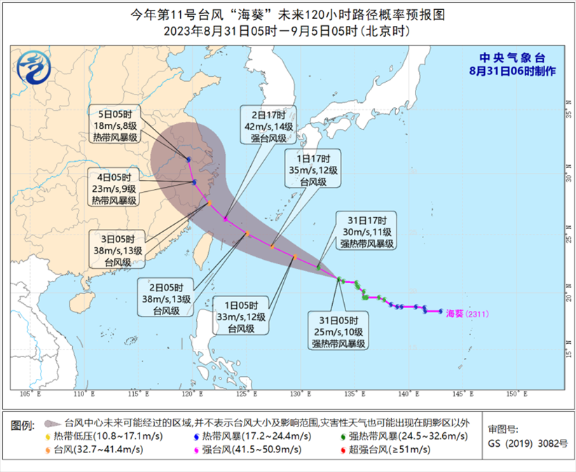 預(yù)計,“蘇拉”將以每小時10公里左右的速度向西北方向移動,逐漸向廣東東部一帶沿海靠近,強度緩慢減弱,并將于9月1日下午至夜間在廣東惠來到香港一帶沿海登陸(強臺風(fēng)級或超強臺風(fēng)級,45~52米/秒,14~16級),也有可能在廣東東部近岸海面向西偏南方向移動。中央氣象臺今晨升級發(fā)布臺風(fēng)紅色預(yù)警。