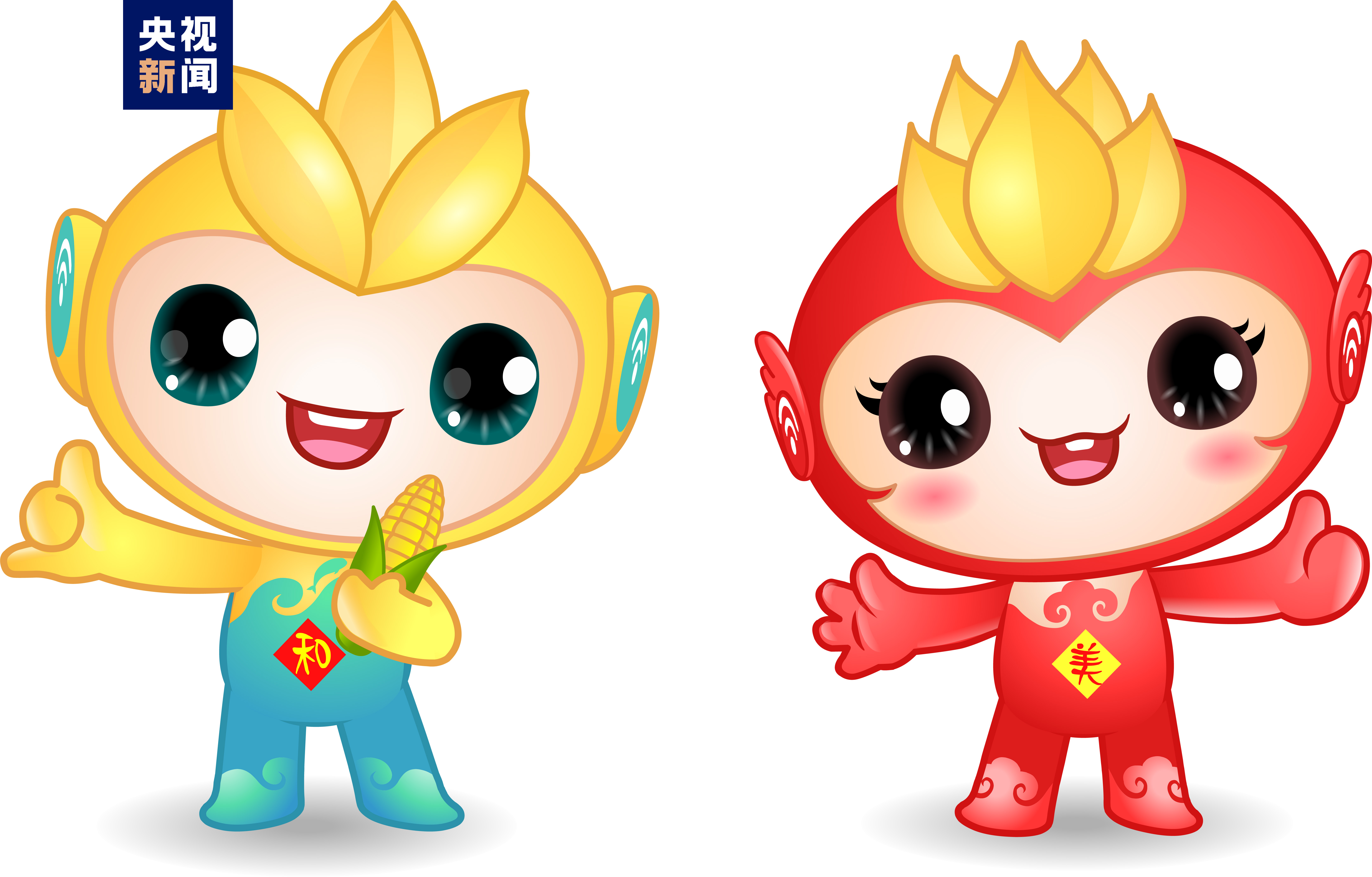 此外,今年中國(guó)農(nóng)民豐收節(jié)的吉祥物是“和和”“美美”兩個(gè)卡通IP形象,表達(dá)了億萬(wàn)農(nóng)民甜甜美美的豐收喜悅、和和睦睦的幸福生活。IP卡通形象的整體設(shè)計(jì),以三大主糧“稻谷、麥穗、玉米”為造型元素,突出豐收節(jié)屬性,融入傳統(tǒng)文化符號(hào)與現(xiàn)代信息符號(hào),傳遞豐收、喜悅、吉慶和農(nóng)業(yè)現(xiàn)代化等寓意。其中,“和和”是一個(gè)男孩形象,頭上三粒稻谷,既代表種子,又代表三生萬(wàn)物,繁榮不息。藍(lán)色波浪代表長(zhǎng)江,江豚魚(yú)躍而上,寓意長(zhǎng)江之畔,魚(yú)米之鄉(xiāng),風(fēng)調(diào)雨順?!懊烂馈笔且粋€(gè)女孩形象,頭上五顆麥粒,寓意代表五谷豐登,表達(dá)了對(duì)農(nóng)民的最美好祝愿,融入了翅膀元素,昭示著中國(guó)農(nóng)業(yè)展翅騰飛,開(kāi)創(chuàng)新未來(lái)。吉祥物的眼睛和耳朵上分別含有信息、數(shù)字科技元素,寓意以科技眼、智慧耳賦能現(xiàn)代農(nóng)業(yè)騰飛,反映了科技賦能、智慧富農(nóng)的新時(shí)代現(xiàn)代農(nóng)業(yè)特征。色彩以黃色和紅色為主,分別代表耕地和喜慶,也是豐收黃和中國(guó)紅,是農(nóng)民和豐收的最直觀體現(xiàn)。起名“和和、美美”,表達(dá)了億萬(wàn)農(nóng)民喜氣洋洋的豐收喜悅、幸福和美的美好生活。