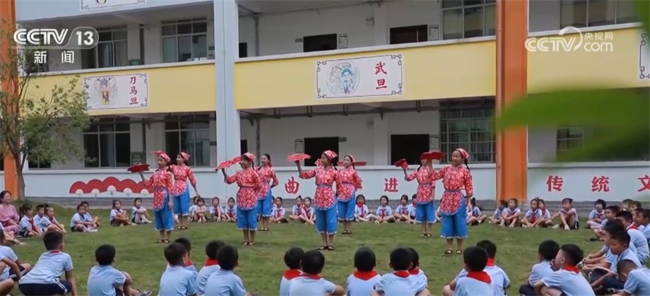 在湖南省永州市蘋洲小學(xué),一場花鼓戲表演正在進(jìn)行。學(xué)生們化身“小戲骨”,把“唱念做打”基本功表現(xiàn)得淋漓盡致?;ü膽蚴菄曳俏镔|(zhì)文化遺產(chǎn)之一,今年暑假,永州市蘋洲小學(xué)將學(xué)唱花鼓戲作為學(xué)生的暑假作業(yè)之一,學(xué)生們自行組隊(duì)進(jìn)行排練,開學(xué)第一課就成了孩子們展示暑假作業(yè)的表演專場。