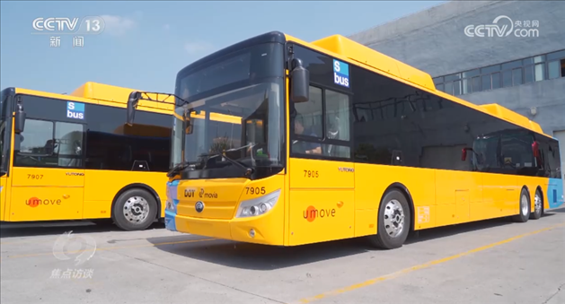 宇通客車(chē)股份有限公司海外高端車(chē)產(chǎn)品管理科科長(zhǎng)楊普:“安全技術(shù),還有輕量化技術(shù),我們都做了比較多的突破,電池的Pack(電池包),還有電池BMS(電池管理系統(tǒng))的控制,它的效率,包括它的體積,還有它的重量,我們做了大量的研發(fā)跟突破?!?/p>